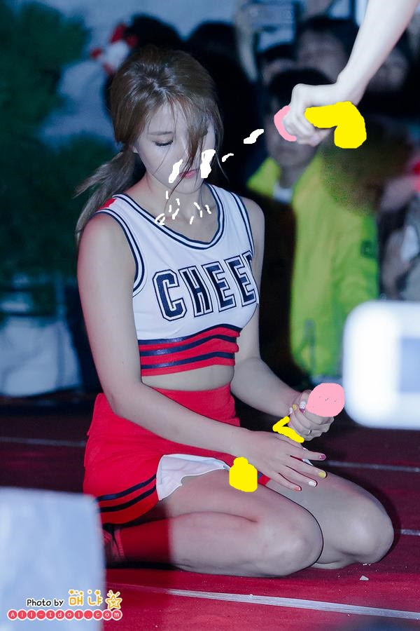 AOA just debuted in Japan and they are already doing a weird-ass porno. I can't tell which member this is (I thought it was Yuna, someone told me it looked like Hyejeong) as the angle makes it difficult to see who it is exactly. But in this picture, the AOA member is a shemale, jacking off while a guy jizzes on her face in public.